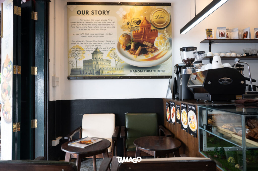 ความรู้นั้นถูกนำมาต่อยอดในการสร้างโปรไฟล์เมล็ดกาแฟอาราบิก้าของตัวเอง ไปจนถึงคาเฟ่ Black and milk ร้านแรกสุดที่ศรีราชา โดยมาในคอนเซปต์โชว์เคสและแล็บทดลอง สำหรับสาขาป้อมพระสุเมรุ ก็มีการปรับตัวให้ตอบโจทย์พฤติกรรมชาวไทยกับชาวต่างชาติในย่านที่ตั้ง สมเป็น Living Lab พร้อมรับฟีดแบค และเป็นสาขาแรกที่เสิร์ฟอาหาร มากกว่าเบเกอรีด้วย