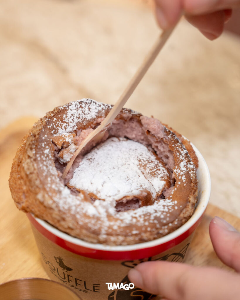 ตอนนี้ทางร้านมีซูเฟล่ให้เลือกถึง 6 รสชาติ เมนูแนะนำ อาทิ Osaka Cream Cheese Soufflé with Honey Lavender Ice Cream เมนูขายดีอันดับ 1 ซึ่งมีวัตถุดิบชั้นดีเป็นครีมชีสจากโอซาก้า ประเทศญี่ปุ่น รสชาตินุ่มนวลและหอมมัน จับคู่กับไอศกรีมรสลาเวนเดอร์กับน้ำผึ้ง ช่วยเพิ่มกลิ่นอ่อนๆ เป็นจานที่เหมาะกับชาร้อนสักแก้ว