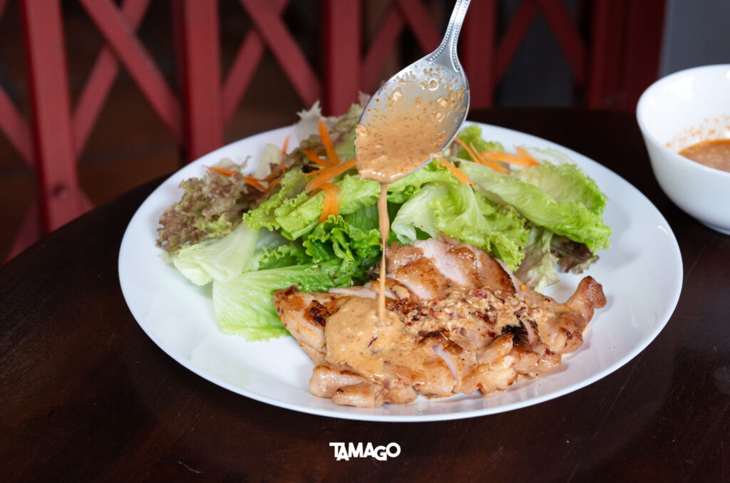 ส่วนใครที่ไม่อยากกินคาร์โบไฮเดรตมาก ลอง สลัดไก่ย่าง จานนี้หน้าตาอาจจะดูธรรมดา แต่มากด้วยรสชาติและของดี ตั้งแต่เนื้อสะโพกไก่ปลอดยาปฏิชีวนะ ที่นำมาเลาะกระดูกออก หมักด้วยซอสสูตรพิเศษของร้านมีฤทธิ์จนนุ่ม ย่างด้วยกรรมวิธีเฉพาะเพื่อลดการเกิดสารก่อมะเร็ง มาพร้อมผักสลัดปลูกตามวิถีเกษตรอินทรีย์จาก ลลิตฟาร์ม (เพจ ลลิต คิดทำสวน) และน้ำสลัดงาแซ่บสูตรออริจินัลแบบฉบับเชฟนาย