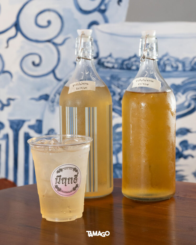 ยังไม่หมด แม้กระทั่งเครื่องดื่ม เชฟนายยังรังสรรค์สูตรดูแลสุขภาพมาให้ หนึ่งในนั้นคือ คอมบูฉะ หมักโฮมเมด ซึ่งดีต่อระบบย่อยอาหาร ช่วยสร้างภูมิคุ้มกัน และลดอาการอักเสบของร่างกายได้ด้วย เช่นเดียวกับเมนูอื่นๆ ที่ผู้คนนิยมในยุคนี้ อย่างชานมและมัตชะน้ำผึ้งมะนาว ดื่มแล้วรรับรู้ได้ถึงความคลีนแบบไม่รู้สึกผิดเลย