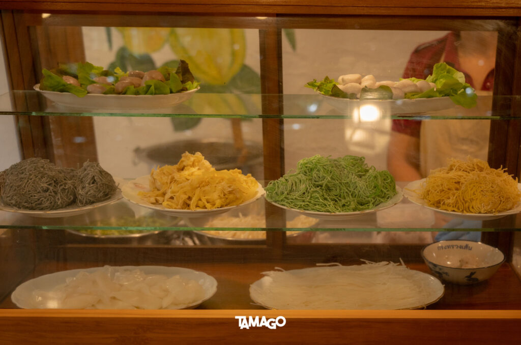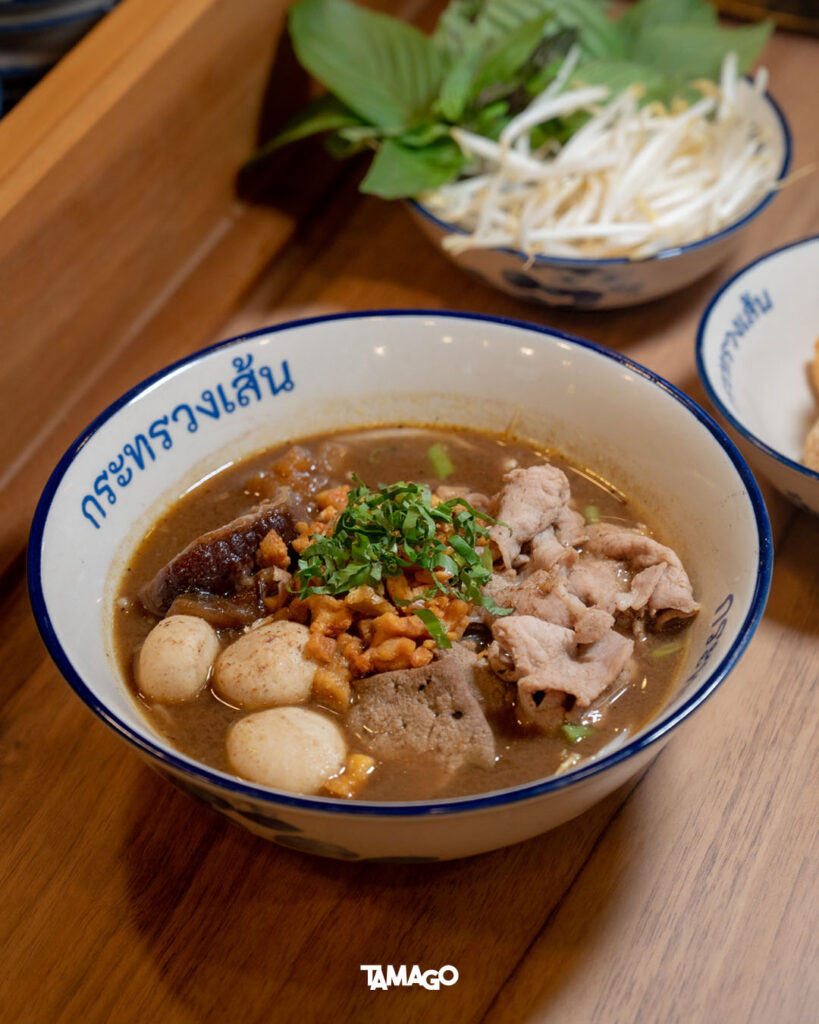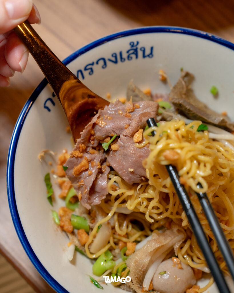 แค่เรื่องเส้นๆ ก็มีให้ลองมากถึง 8 แบบ เช่น บะหมี่ออร์แกนิก หมี่หยก หมี่ชาร์โคล เส้นเป๊าะ และเส้นปลา เรียกได้ว่าวาไรตี้มาก เลือกได้ตามชอบเลย ขณะที่น้ำซุปกับเครื่องปรุง ก็ช่วยส่งเสริมกันเพื่อรสชาติอันเข้มข้น มีทั้งความหวานหอมจากวัตถุดิบธรรมชาติ กับความเผ็ดจัดจ้านของพริกแกงก๋วยเตี๋ยวเรือ พอได้ประกอบร่างรวมกับเนื้อสัตว์ ผักบุ้ง ถั่วงอก และอื่นๆ แล้วลงตัว