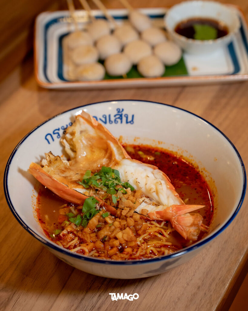 อีกเมนูที่น่าสนใจของร้านคือเมนูก๋วยเตี๋ยวนานาชาติอย่าง เซมบาวัง ก๋วยเตี๋ยวสไตล์สิงคโปร์ หน้าตาคล้ายต้มยำน้ำข้นแต่รสชาติละมุนกว่า ออกไปทางเค็มและหวานอ่อนๆ จะเสิร์ฟพร้อมซีฟู้ดเป็นหลัก แต่ทีเด็ดของกระทรวงเส้น คือเสิร์ฟกับกุ้งแม่น้ำเผา มันเยิ้มทั้งตัว! ไม่ต้องขึ้นเครื่องบินไปชิม ก็มาที่กระทรวงเส้นได้ก่อน