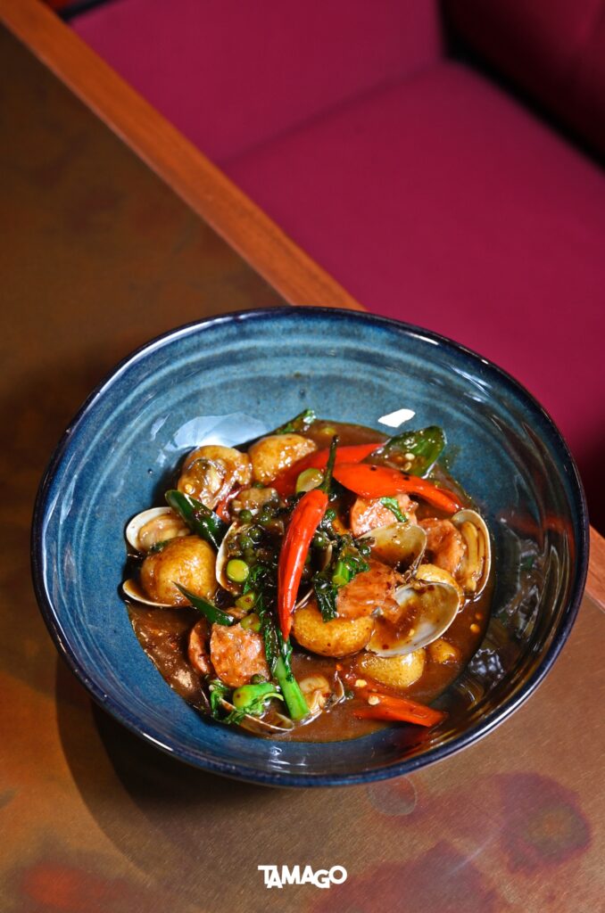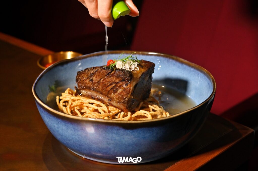 ต่อด้วยเมนคอร์สที่สะท้อนความสนุกของครัวไอ้ฝรั่ง Cabbage กะหล่ำปลีผัดซอสราวิโกต, Mochi Gnocchi ผัดขี้เมาที่นำเอาญ็อกกี้เนื้อหนึบเข้ามาผสานกับรสชาติแบบไทยๆ เสริมด้วยหอยอาซาริและแหนม, Hamachi Collar Sam Rod เมนูปลา 3 รสที่เลือกใช้เป็นปลาฮามาจิ เนื้อนุ่ม ในน้ำซุปหอมเครื่องเทศ, Beef Short Rib Rat Na ราดหน้าเนื้อซี่โครง เสิร์ฟมาพร้อมหมี่กรอบและน้ำราดรสเปรี้ยวชุ่มคอ