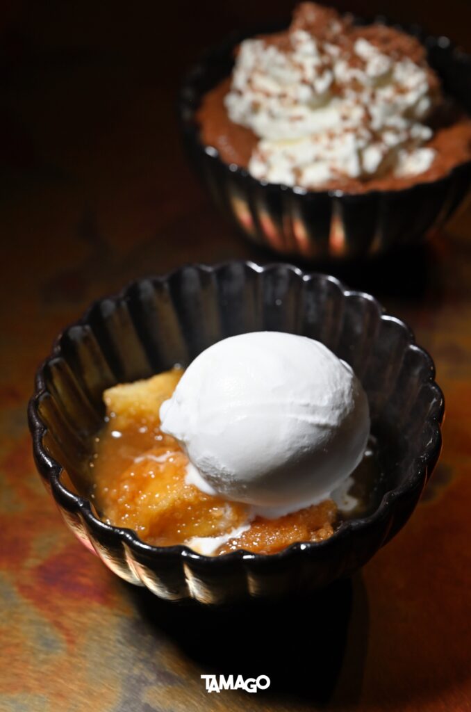ปิดท้ายที่ของหวาน Butter Mochi Butterscotch โมจิเนื้อนุ่ม ราดซอสบัตเตอร์สก็อตซ์ ท็อปด้วยไอศครีมกะทิ, Chocolate pudding ช็อกโกแลตพุดดิ้งเนื้อมูส เข้มข้น ละมุน