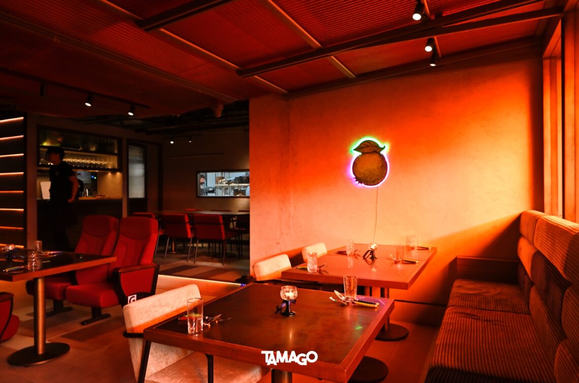 บรรยากาศของร้านหยิบศาลาไทยริมน้ำเข้ามาผสานกับความร่วมสมัยในสไตล์ดิบเท่ โดดเด่นด้วย 3 เฉดสี ที่สะท้อนภูมิทัศน์ของประเทศไทย อาทิ สีส้มที่ได้แรงบันดาลใจจากแสงอาทิตย์ยามเย็นของเกาะพะงัน, สีเขียวที่สะท้อนโทนป่าของเชียงใหม่ และสีน้ำเงินที่ชวนให้นึกถึงท้องทะเลลึกทางใต้ของไทย ใส่ใจรายละเอียดไปจนถึงเฟอร์นิเจอร์ และของสะสมที่ให้กลิ่นอายยุค 60s–70s ทั้งยังคลอไปด้วยเพลงไทยที่เรียกได้ว่า ‘ปีลึก’ ของจริง ที่ช่วยเติมอารมณ์ให้มื้ออาหาร