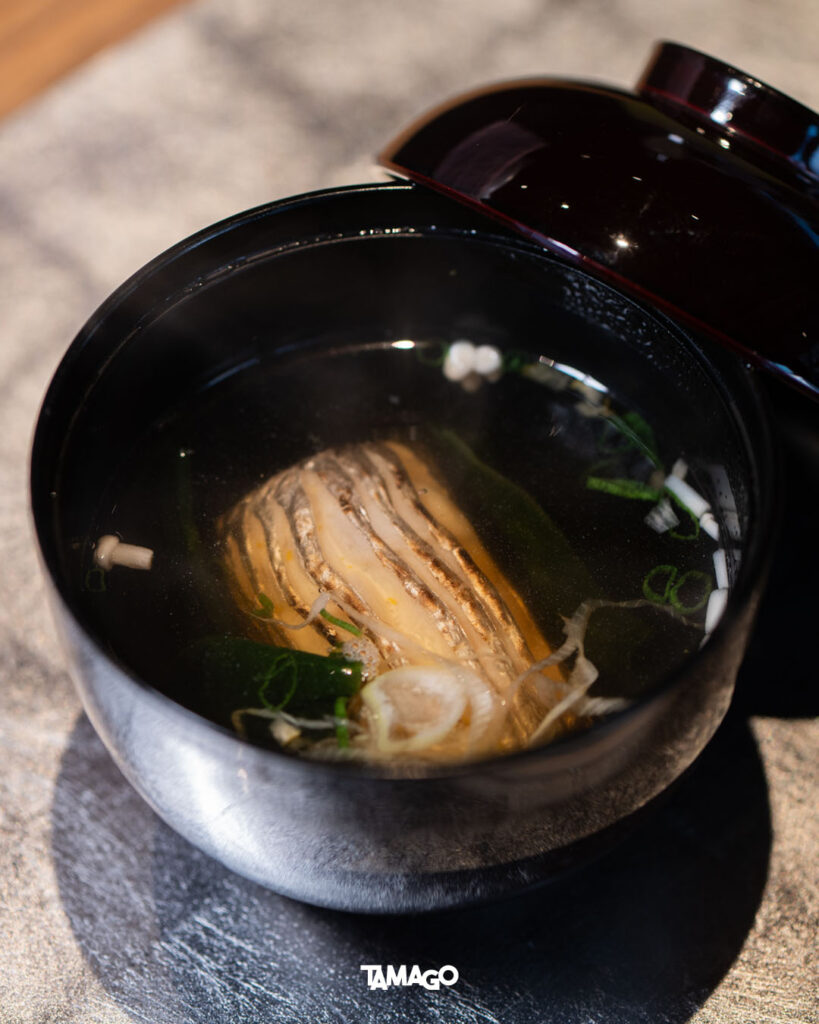 จากนั้นจึงจะเสิร์ฟ Tachiuo Soup ซุปใสใส่ปลาดาบเงิน ให้ซดร้อนๆ ก่อนปิดท้ายด้วยไข่หวานย่างหอมกลิ่นกุ้ง เพื่อเตรียมตัวเข้าสู่เซ็ตของหวาน เป็นเมลอนหวานฉ่ำกับไอศกรีมยูสุโฮมเมด ทั้งหมดนี้เป็น Shiki Signature Set สำหรับช่วงฤดูใบไม้ผลิ/ฤดูร้อน ซึ่งทางร้านจะเปลี่ยนวัตถุดิบและหมุนเวียนไปอีก ขึ้นอยู่กับ “ของดีประจำวัน” ตามคอนเซ็ปต์ของร้านที่อยากให้ได้ลิ้มรสชาติแห่งฤดูกาล