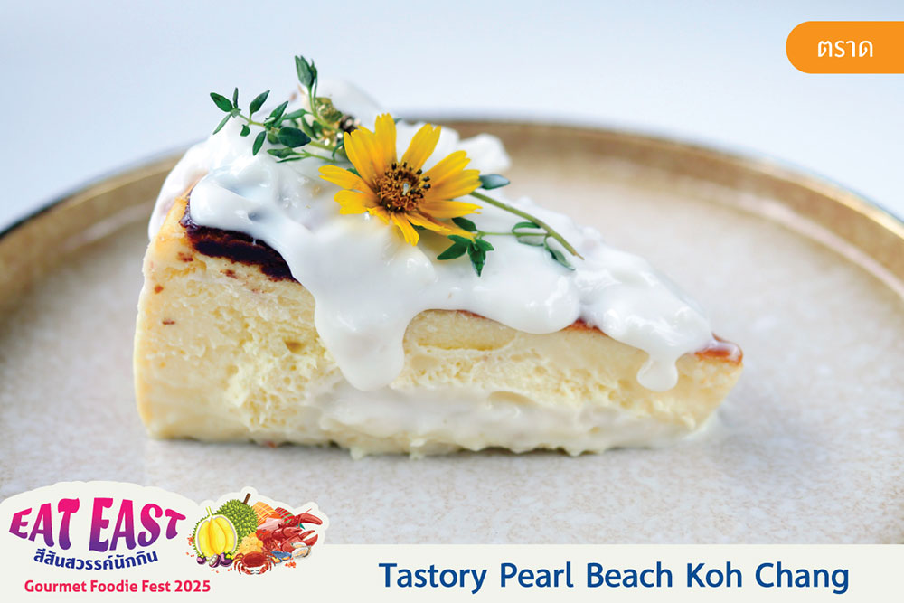 • Tastory Pearl Beach Koh Chang คาเฟ่ติดทะเลเกาะช้าง เสิร์ฟเมนู Coconut Cloud Cheesecake ชีสเค้กเนื้อนุ่มละมุน หอมกลิ่นมะพร้าวสด รสหวานกำลังดี เคี้ยวเพลินละลายในปาก