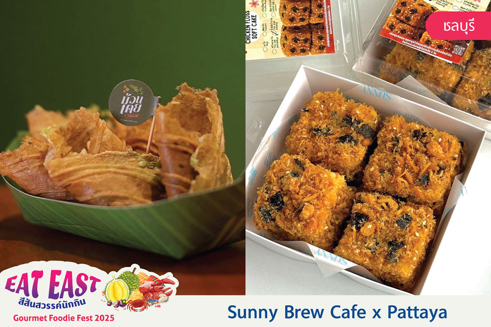 • Sunny Brew Cafe x Pattaya ทองม้วนสดกรอบไส้ใบเตย ไส้มะพร้าวอ่อน มี 4 รสชาติ และเค้กไก่หย็อง มี 5 รสชาติ