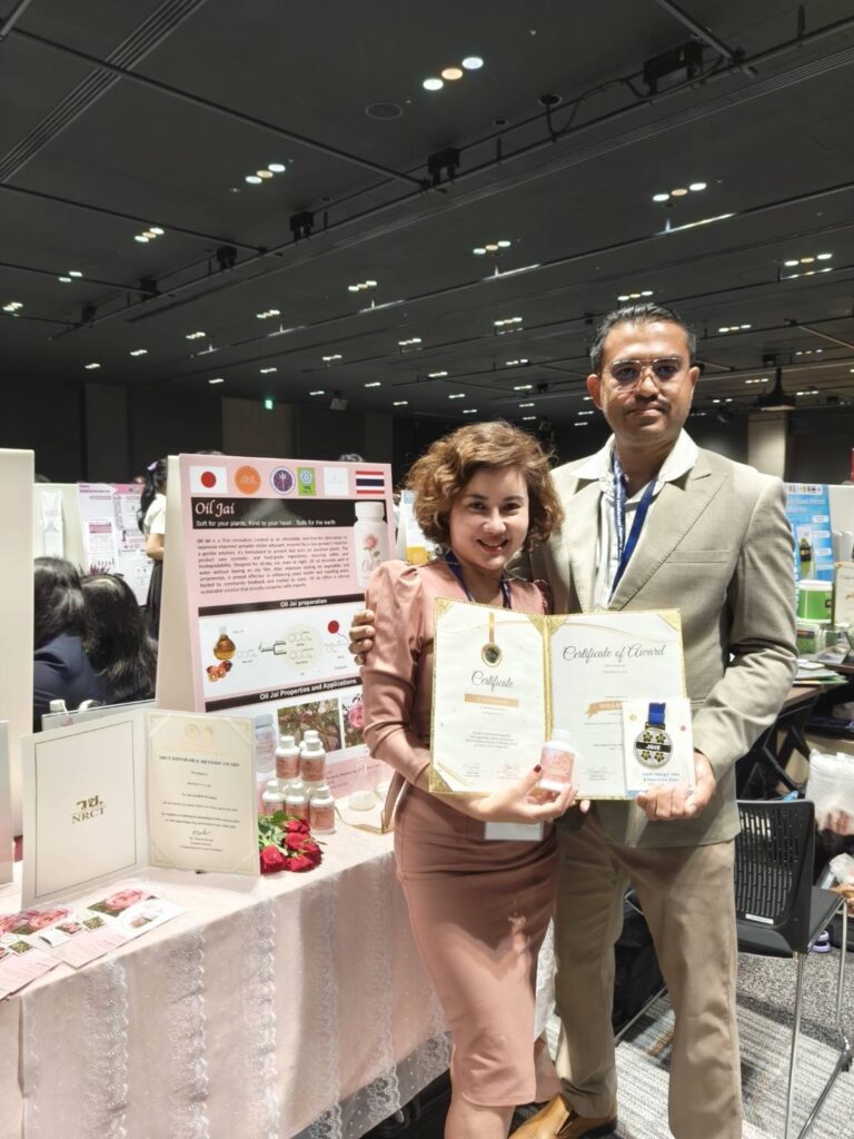 อาจารย์ศีตลา และ อาจารย์เรวัติ นาคแก้ว อาจารย์พิเศษผู้ทรงคุณวุฒิของโรงเรียนสุคนธีรวิทย์และสองผู้บริหารบริษัท แพลนท์ รีเซิร์ฟ จำกัด รับรางวัลเหรียญทอง Gold Medal for The Invention และรางวัล For The Excellent Invention จากการประกวดสิ่งประดิษฐ์และนวัตกรรมระดับนานาชาติ Japan, Design Idea and Invention Expo (JDIE) 2025 ที่จัดขึ้นเมื่อวันที่ 5 – 6 กรกฎาคม 2568 โดย World Invention Intellectual Property Associations ณ กรุงโตเกียว ประเทศญี่ปุ่น จากโครงการวิจัยออยล์ใจ “อ่อนโยนต่อพืช อ่อนโยนต่อหัวใจ และปลอดภัยต่อโลก” (Oil Jai: Soft for your plants, kind to your heart, safe for the earth)