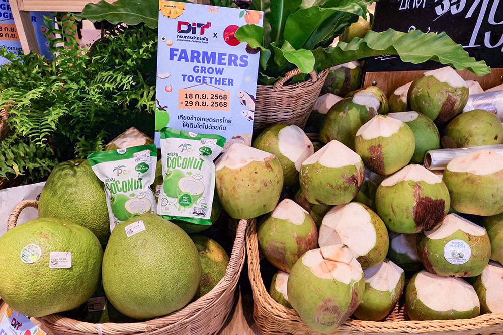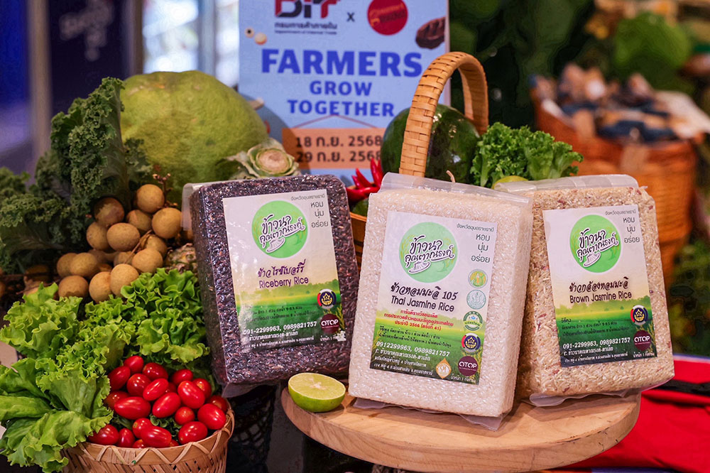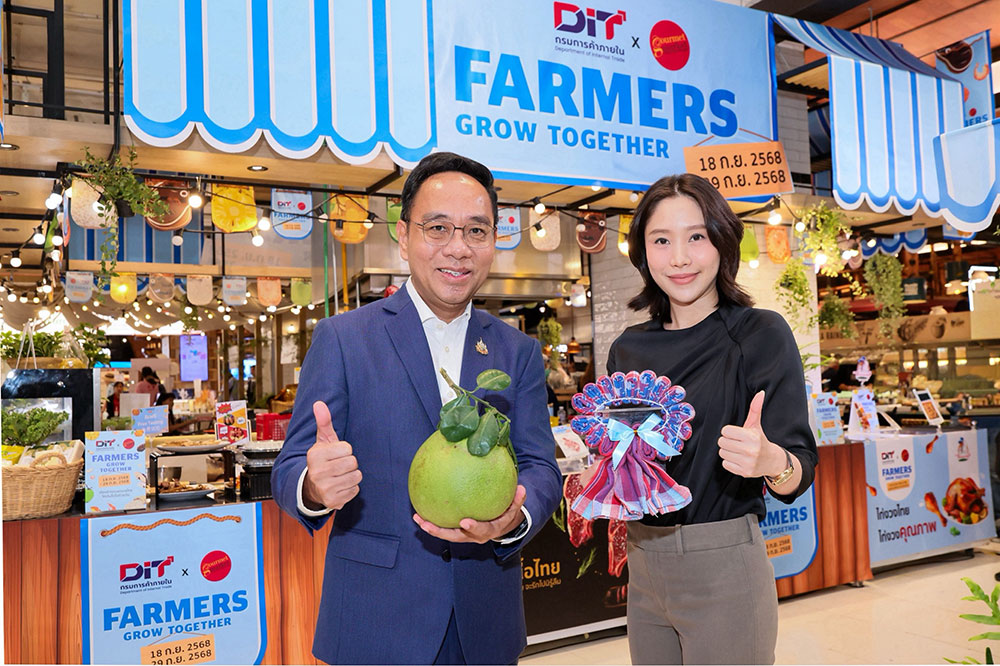 กรมการค้าภายใน กระทรวงพาณิชย์ ร่วมกับ กูร์เมต์ มาร์เก็ต พรีเมียมซูเปอร์มาร์เก็ตระดับเวิลด์คลาส ภายใต้การบริหารโดย เดอะมอลล์ กรุ๊ป จัดงาน “DIT X Gourmet Market Farmers Grow Together” เคียงข้างเกษตรกรไทยไปด้วยกัน เปิดพื้นที่สนับสนุนผู้ประกอบการรายย่อยและช่วยเหลือเกษตรกรไทยในการแก้ปัญหาสินค้าล้นตลาด ชวนอุดหนุนสินค้าคุณภาพส่งตรงจากเกษตรกรไทย นำโดย ข้าวหอมมะลิคุณภาพดีที่ได้รับรางวัลการประกวดข้าวหอมมะลิของประเทศไทย นอกจากนี้ยังมีผัก ผลไม้ เนื้อสัตว์ ตลอดจนสินค้าแปรรูป, สินค้า OTOP และสินค้าหัตถกรรมรวมกว่า 80 รายการมาให้เลือกซื้อในราคาพิเศษ ตั้งแต่วันนี้ – 29 กันยายน 2568 ที่ กูร์เมต์ มาร์เก็ต ชั้น G สาขาพารากอน ดีพาร์ทเม้นท์สโตร์