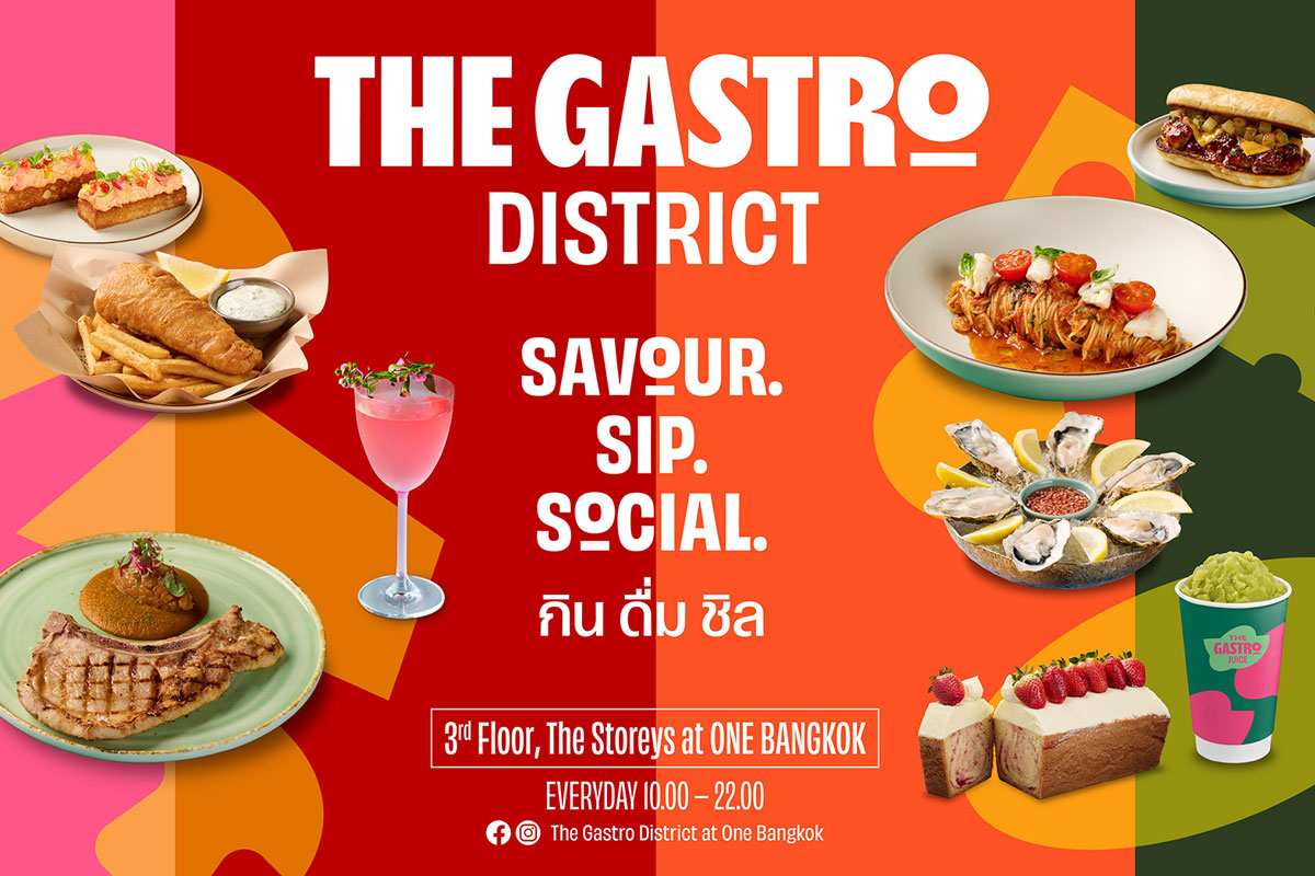 ครั้งแรกของโมเมนต์กิน-ดื่ม-ชิลที่ครบที่สุดใจกลางเมือง The Gastro District (เดอะ แกสโตร ดิสทริกต์)เดสติเนชันที่ดีไซน์มาอย่างลงตัวสำหรับคนเมืองยุคใหม่ ให้มา “Savour | Sip | Social” กันได้ตลอดทั้งวัน ตั้งแต่ All Day Dining ไปจนถึง Afterhour Social Experience เพราะชีวิตดี ๆ ต้องมีทั้งรสชาติ บรรยากาศ และช่วงเวลาที่อยากแชร์แบบครบจบในที่เดียว ไม่ว่าจะจังหวะไหน ที่นี่คือคำตอบสำหรับทุกไวบ์ที่คนเมืองตามหาที่ The Gastro District ชั้น 3 The Storeys โครงการ One Bangkok