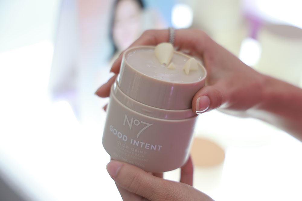 - Cleanse: No7 Good Intent Cleansing Balm เริ่มต้นผิวสะอาดใสด้วยคลีนซิ่งบาล์มเนื้อนุ่มละมุน ที่จะเปลี่ยนเป็นน้ำนมเมื่อสัมผัสกับน้ำ ช่วยละลายเมคอัพกันน้ำ ครีมกันแดด และสิ่งสกปรกอุดตันได้อย่างหมดจดในขั้นตอนเดียว ล้างออกง่าย ไม่ทิ้งคราบมัน และไม่ทำให้ผิวแห้งตึง ให้ความรู้สึกสะอาดสดชื่นพร้อมรับการบำรุง
