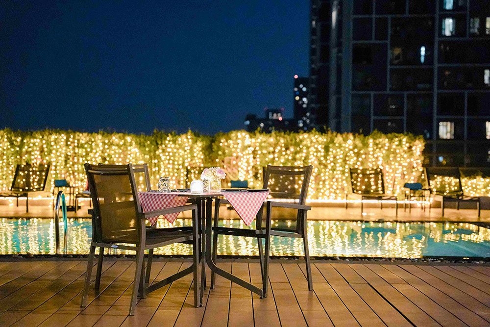เลือกฉลองความรักท่ามกลางบรรยากาศสบายๆ พร้อมชมดาวสวยๆ กับ Grill & Chill: Date Night Edition บุฟเฟต์บาร์บีคิวริมสระน้ำ อิ่มอร่อยกับซีฟู้ดอย่างกุ้งแม่น้ำ หอยแมลงภู่นิวซีแลนด์และเนื้อที่นำมาย่างถ่านหอมอร่อย นอกจากนี้ยังมีสเตชั่นอาหารไทย อาหารว่าง ซุป สลัด และของหวานหลากหลาย ในราคาเพียงท่านละ 1,190++ บาท สำหรับอาหารทานได้ไม่อั้น หรือจะเพิ่มเครื่องดื่มดื่มได้ไม่อั้นตลอด 2 ชั่วโมง ในราคาเพียง 800++ บาทต่อท่าน ณ บริเวณเดอะเดค ชั้น 9 ของโรงแรมฯ