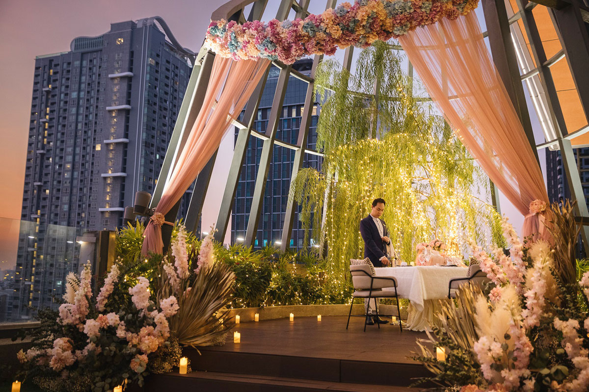 สำหรับคู่รักที่มองหาค่ำคืนซึ่งอบอวลด้วยบรรยากาศโรแมนติกพร้อมชมวิวเมืองที่สวยงามและลมเย็นยามค่ำ A Terrace Love Story เซ็ตอาหารค่ำ 4 คอร์สใต้แสงเทียน คือคำตอบ ไฮไลต์เมนูประกอบด้วยซุปซีฟู้ดสไตล์เมดิเตอเรเนี่ยน แซลมอนและ ทูน่าเซวิเช่ และอาหารจานหลักที่สามารถเลือกได้ระหว่าง บีฟเวลลิงตัน (Beef Wellington) หรือปลากะพงขาวย่าง (Grilled White Snapper) ปิดท้ายด้วยของหวานซิกเนเจอร์อย่าง Sweet Circle of Love ให้บริการตั้งแต่เวลา 18.00 – 22.00 น. ราคา 2,650++ บาทต่อคู่สำหรับเซ็ตอาหาร หรือจะเพิ่มเครื่องดื่มดื่มได้ไม่อั้นภายในเวลา 2 ชั่วโมง ในราคาเพียง 800++ บาทต่อท่าน ที่ห้องอาหารกรีนเฮ้าส์ และเทอเรซ บาร์ ชั้น 7 ของโรงแรมฯ