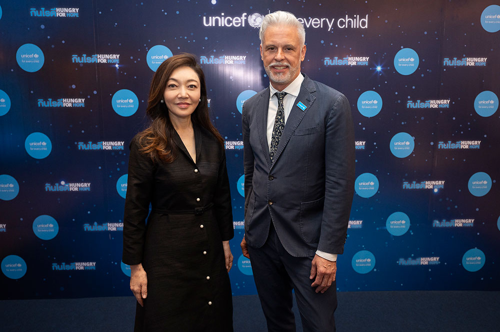 นายเคน เลกินส์ ผู้อำนวยการองค์การยูนิเซฟ ประเทศไทย กล่าวว่า “ภาวะทุพโภชนาการในเด็กยังคงเป็นปัญหาที่น่ากังวลอย่างยิ่ง ทั้งในประเทศไทยและทั่วโลก เด็กจำนวนมากยังไม่สามารถเข้าถึงอาหารที่มีคุณค่าและโภชนาการที่เหมาะสม และต้องเผชิญกับทั้งภาวะขาดสารอาหารและโรคอ้วน ความจริงแล้ว โภชนาการที่ดีไม่ใช่เรื่องซับซ้อน แต่ความท้าทายสำคัญอยู่ที่การเข้าถึงอาหารที่มีคุณค่าทางโภชนาการ และการมีระบบสนับสนุนที่ช่วยให้ครอบครัวสามารถตัดสินใจเลือกอาหารได้อย่างเหมาะสม งานยูนิเซฟ บลูสตาร์ กาล่า ในวันนี้จึงไม่ใช่เพียงงานระดมทุน แต่เป็นการแสดงพลังความร่วมมือและความรับผิดชอบร่วมกัน เพราะภาวะทุพโภชนาการในเด็กไม่ใช่ปัญหาของใครคนใดคนหนึ่ง หากแต่เป็นความรับผิดชอบของเราทุกคน ยูนิเซฟขอขอบคุณสตรีผู้ทรงอิทธิพลทั้ง 4 ท่านและเชฟทุกท่าน ที่ได้ใช้บทบาทความเป็นผู้นำ อิทธิพล และเวทีของตนเอง ร่วมกันขับเคลื่อนการเปลี่ยนแปลง เพื่อสร้างอนาคตที่ดีกว่าสำหรับเด็ก ๆ”